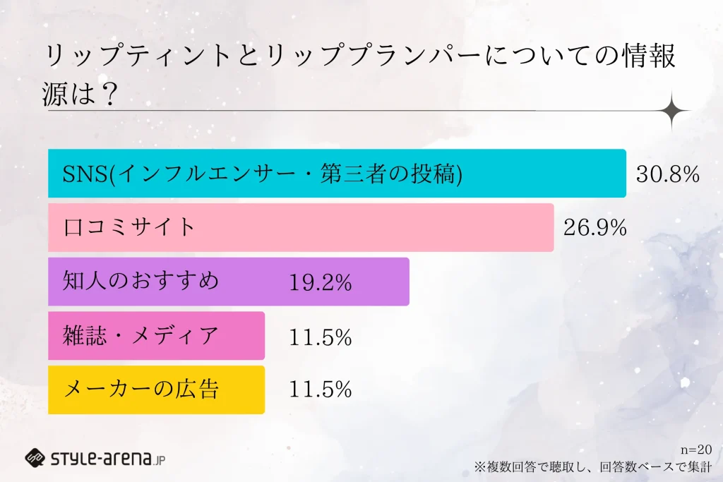 では、彼女たちがどうやって「使い分け」や「カスタマイズ術」を知っているのかを探るべく、「リップティントとリッププランパーについての情報源は?」と聞いてみました。