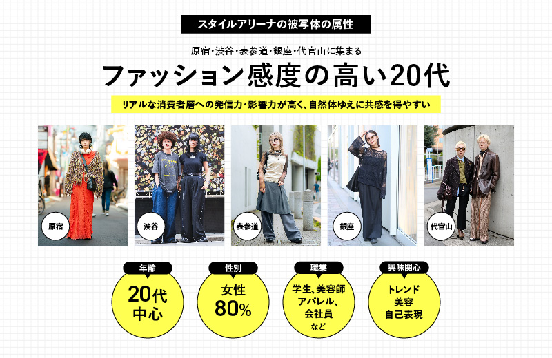 一方、スタイルアリーナが捉える被写体=おしゃれなZ世代は、トレンド感度が高く、自分の感性を言葉で語れるアーリーアダプター。