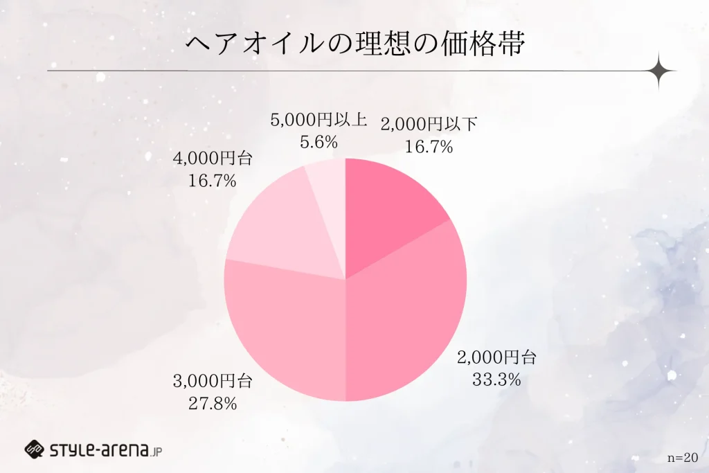 「ヘアオイルの理想の価格帯」については、「2,000円〜5,000円程度」という声が多数。