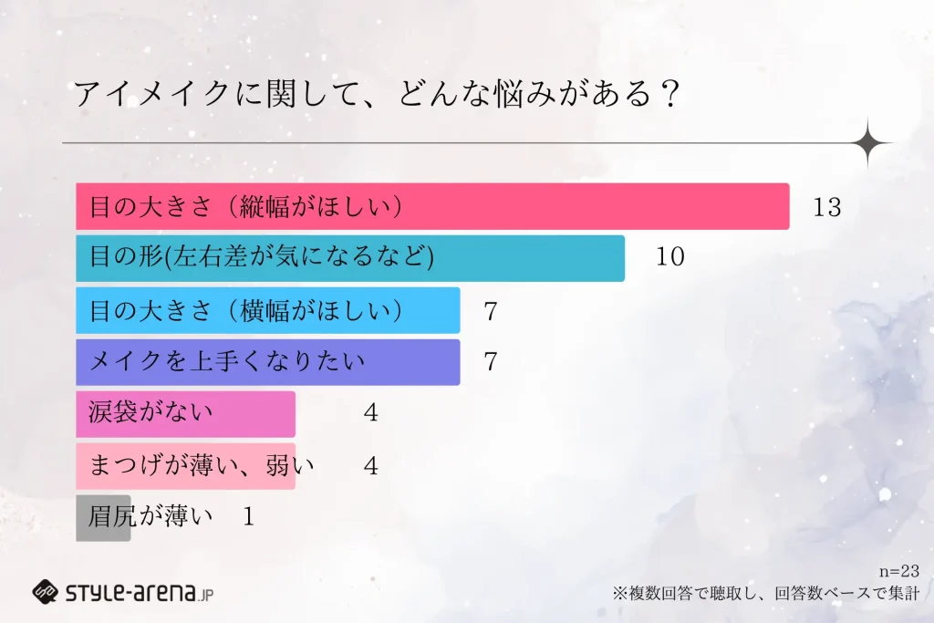 では、そんな彼女たちはアイメイクに関して、どんな悩みがあるのかを聞いてみました。